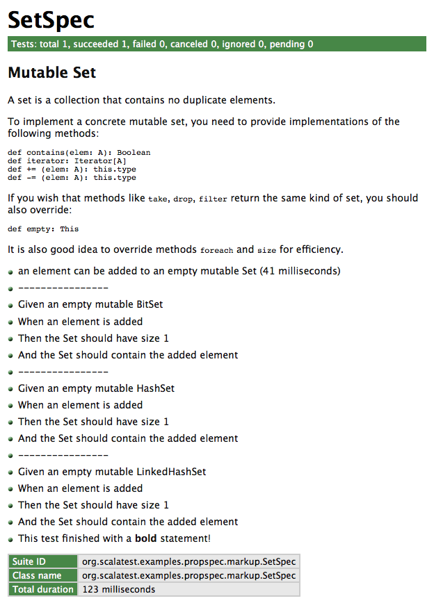 by the primary constructor of SetSpec. You specify the name of the test as